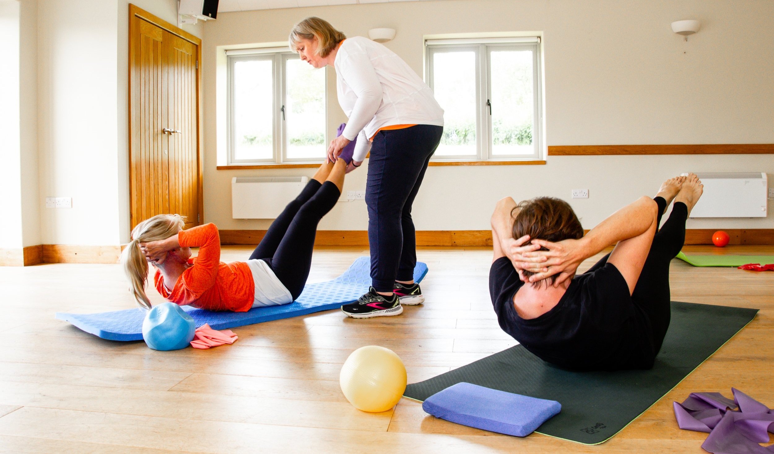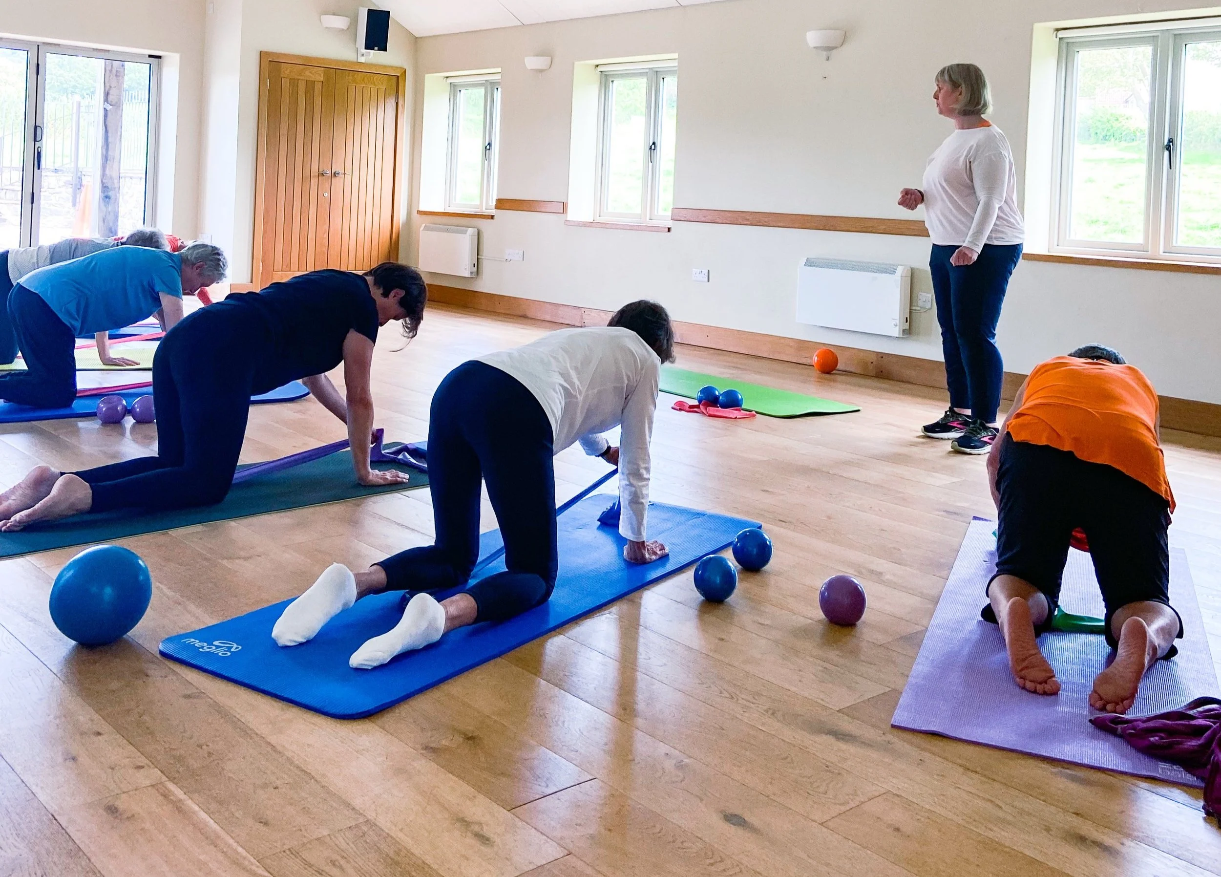 The classes are run in the YMCA hall in Timsbury on Wednesday evenings for an hour starting at 7.30pm or on Thursday mornings at 9.30am. The Pilates is run in 6-week blocks, each block has a theme running through it, for example the present block is based on balance.